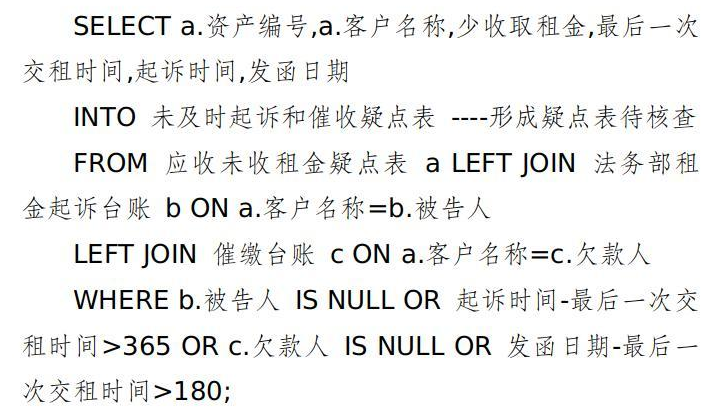 --查找欠租未起诉或至最后一次交租后1年才起诉或未催收或超过最后一次交租后半年才催收的疑点(如表中有欠租时间,则直接用欠租时间与催收日期及起诉日期比较,如无,则用最后一次交租时间,与催收日期及起诉日期比较时适当考虑交租周期)